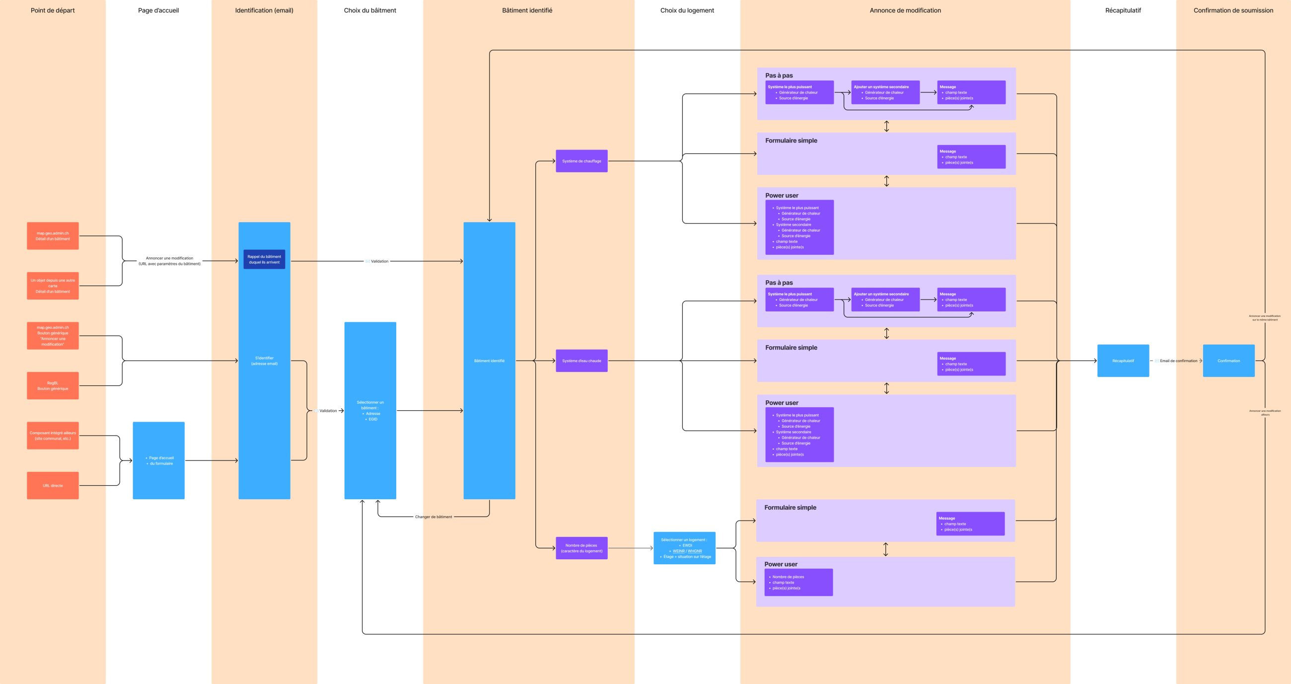 Une fois les besoins identifiés, nous avons travaillé sur le flux d’utilisation : quelles étapes, quelles pages, quel accompagnement ?