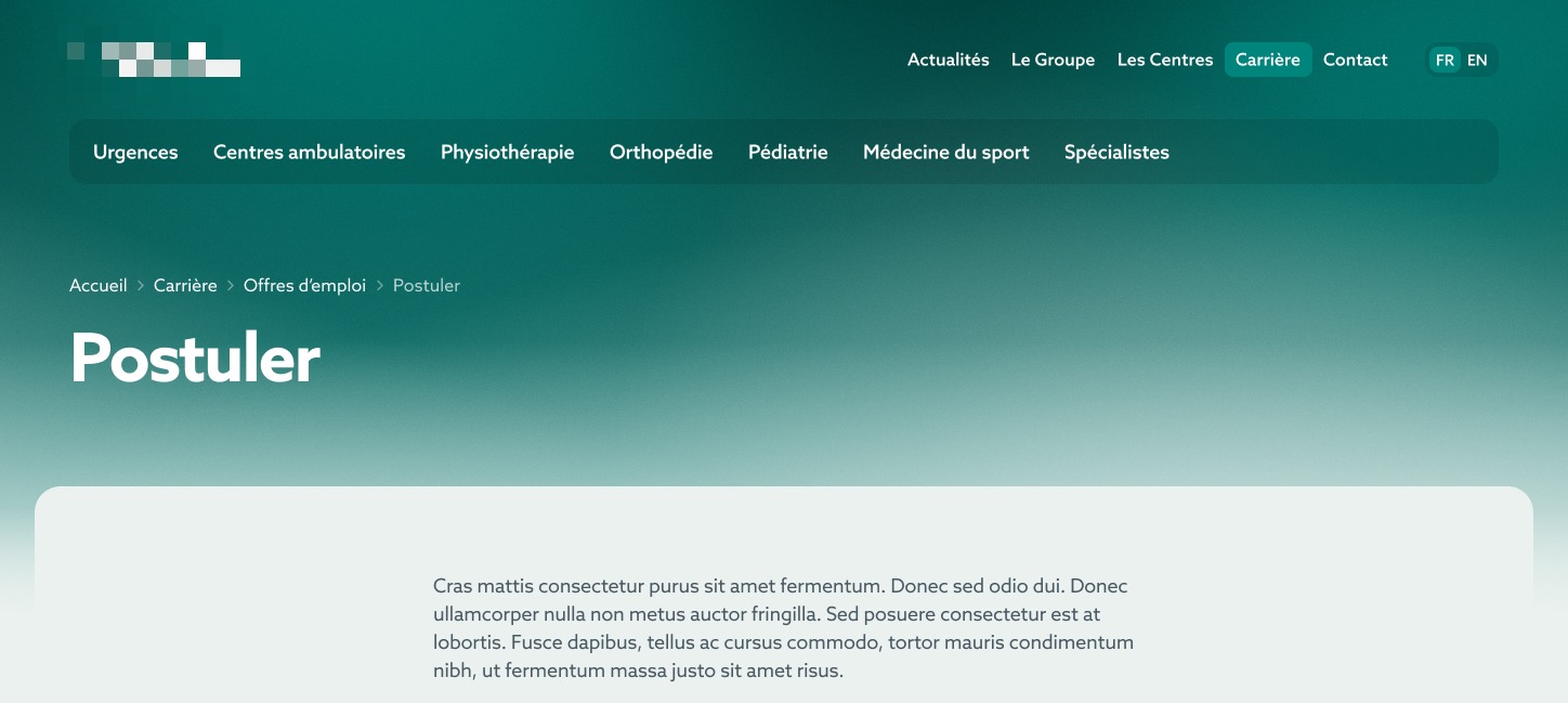 - Page courante : “Postuler” avec le titre de la route.